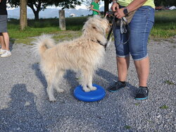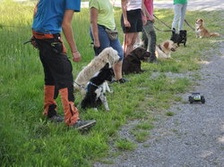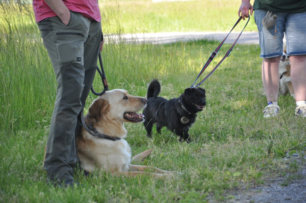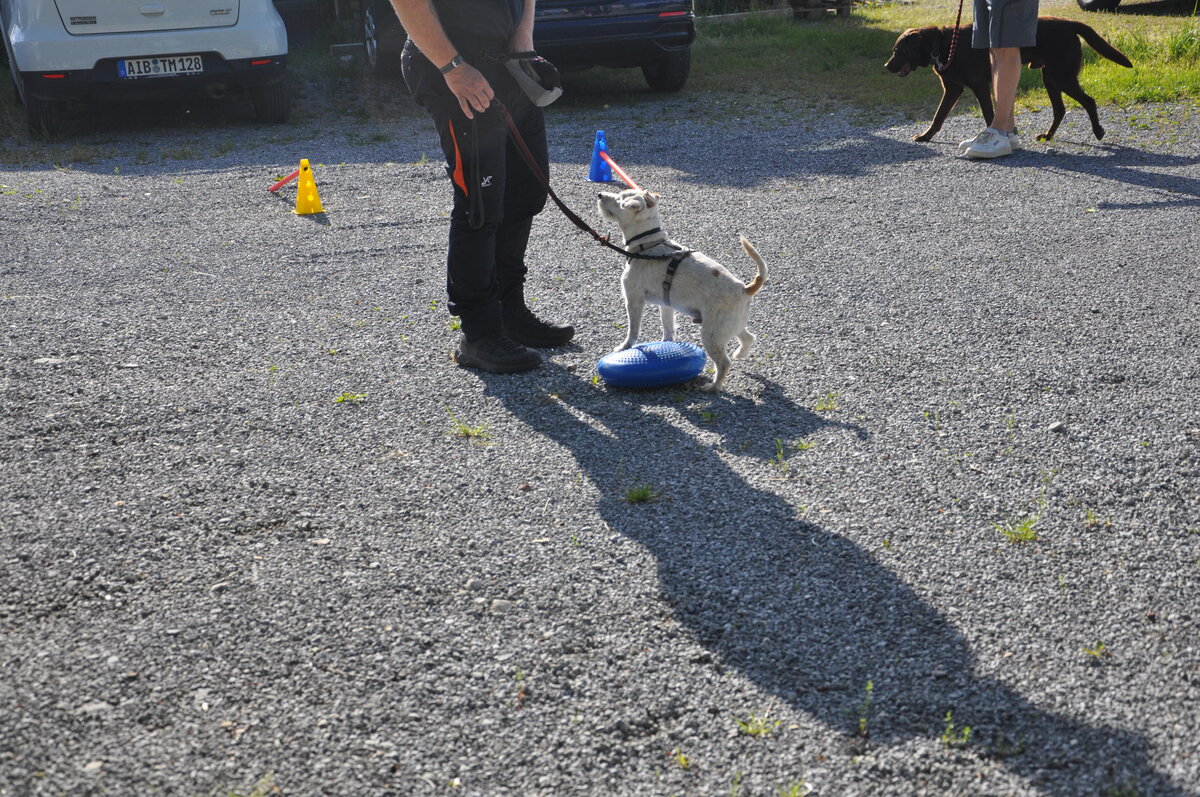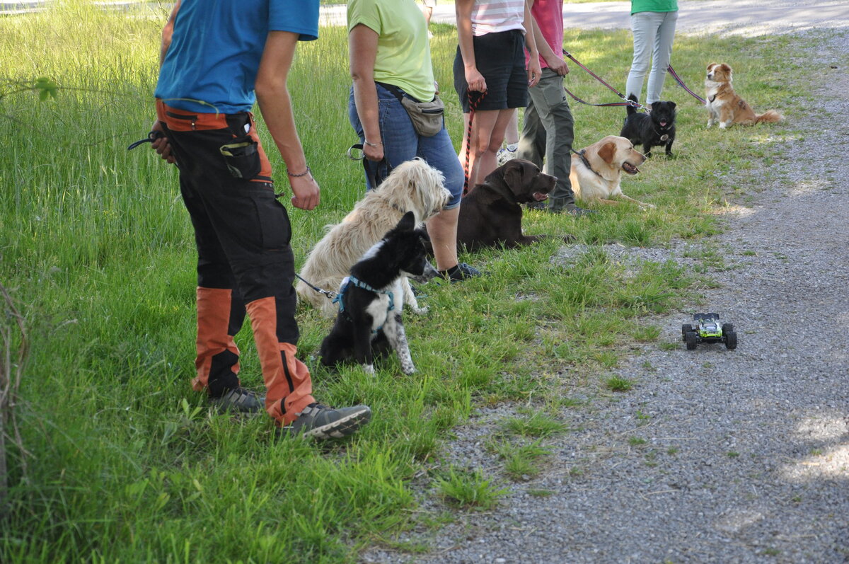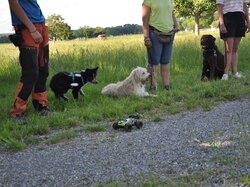 In den Gruppenstunden üben wir neben Alltagssituationen, verschiedene Untergründe (Kies, Gitter, Beton, Wiese, etc.) und auch Themen wie Hundebegegnungen, Leinenführigkeit oder körpersprachliches Arbeiten mit unseren Hunden.